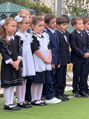 Сегодня учебный день начался с поднятия флага и исполнения гимна.